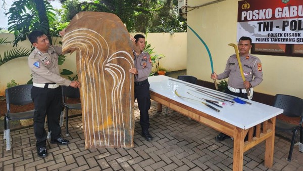 Saat didatangi, benar saja, polisi menemukan empat anak tengah menggerinda plat besi untuk dibentuk menjadi parang dan kelewang. Melihat hal tersebut, keempatnya langsung diamankan bersama barang bukti.