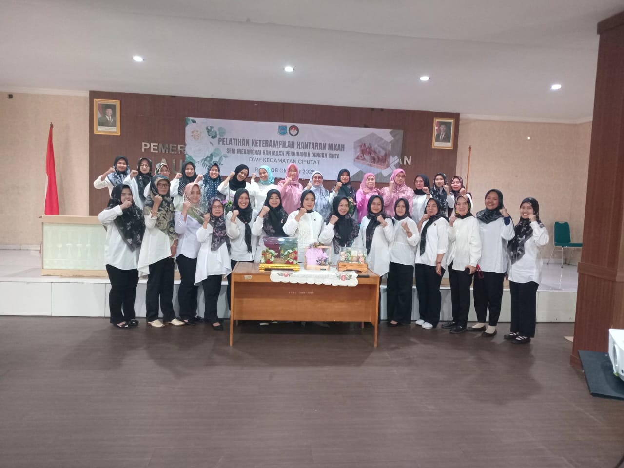 Kegiatan yang bertema “Seni Merangkai Hantaran Pernikahan dengan Cinta” ini dihadiri oleh berbagai unsur penting, di antaranya Ketua DWP Kota Tangsel yang diwakili oleh Santi Cahyadi, Kabid Pemberdayaan Perempuan DP3A2KB Drg. Mercy Aprianti, Ibu Camat Ciputat Masnawati, serta para istri lurah dan kasie se-Kecamatan Ciputat.