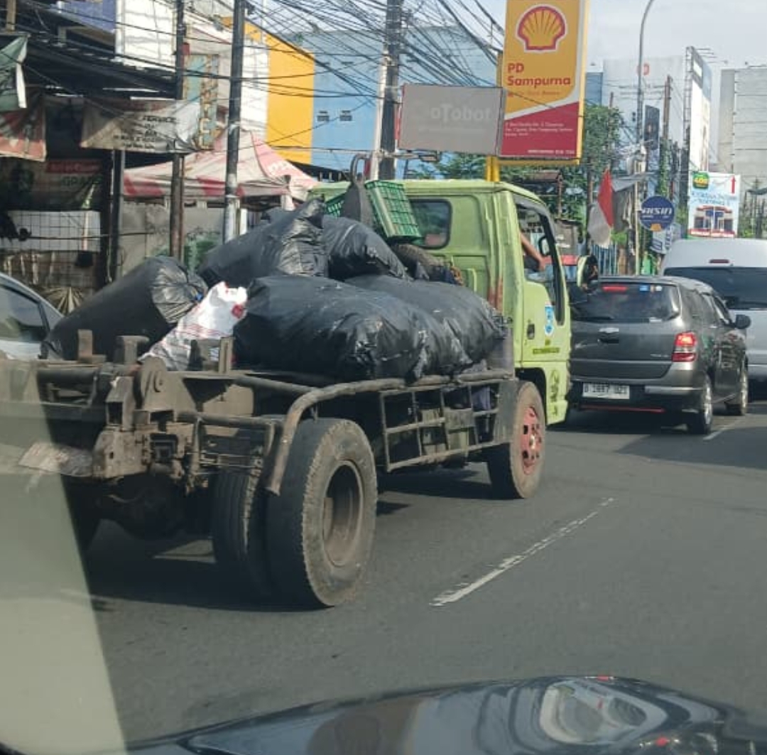 Pantauan publicindonesia.com, mobil berwarna khas operasional DLH Tangsel itu awalnya melintas dari kawasan Situ Sasak, kemudian menuju Bundaran Tugu Pamulang hingga ke arah Reni. Di bagian belakang, terlihat beberapa kantong plastik sampah berwarna hitam terbungkus rapi namun diletakkan langsung di badan truk tanpa pengaman bak amrol.