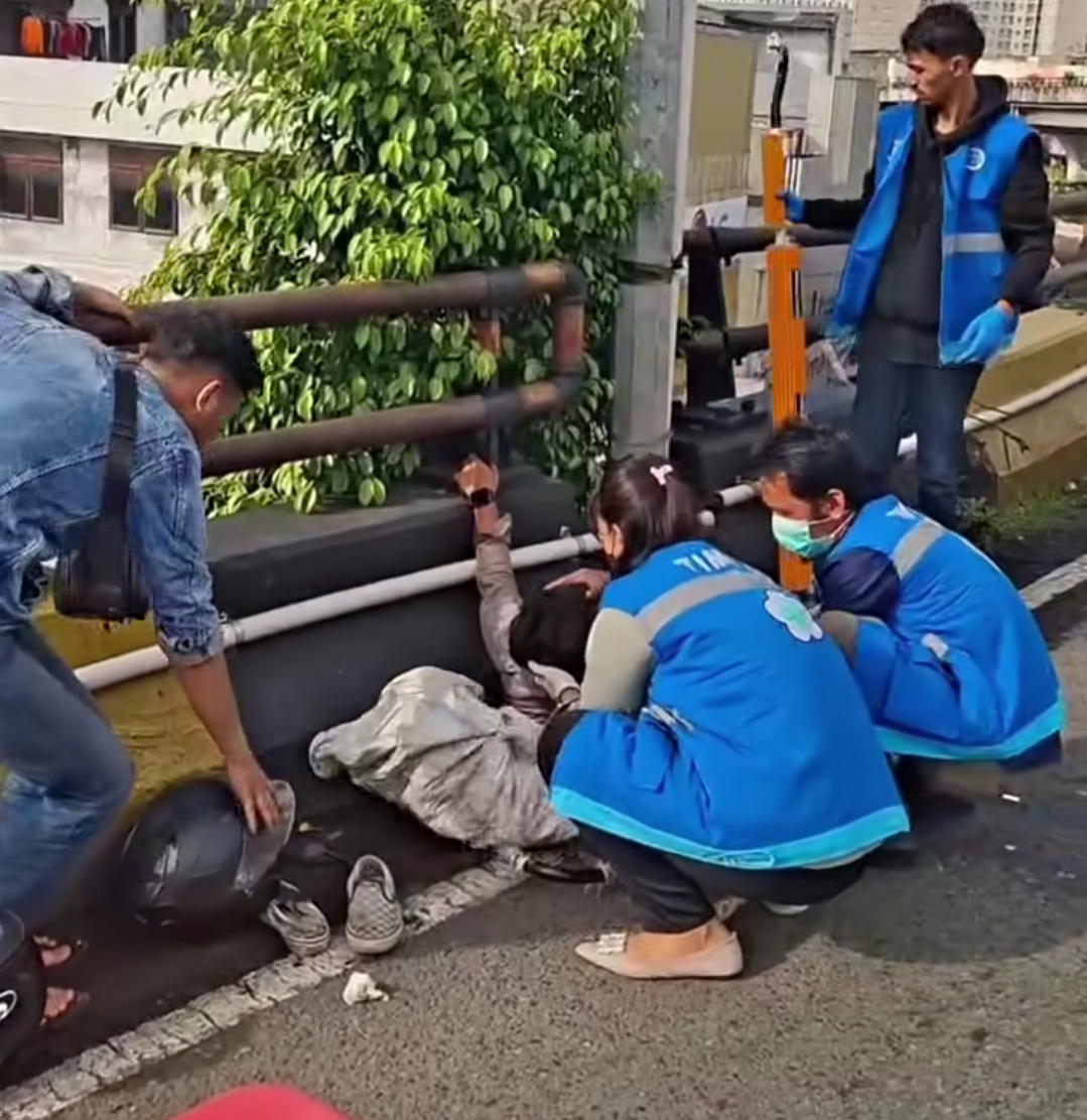 Warga sekitar yang melihat kejadian tersebut segera memberikan pertolongan dan melaporkan insiden ke petugas.