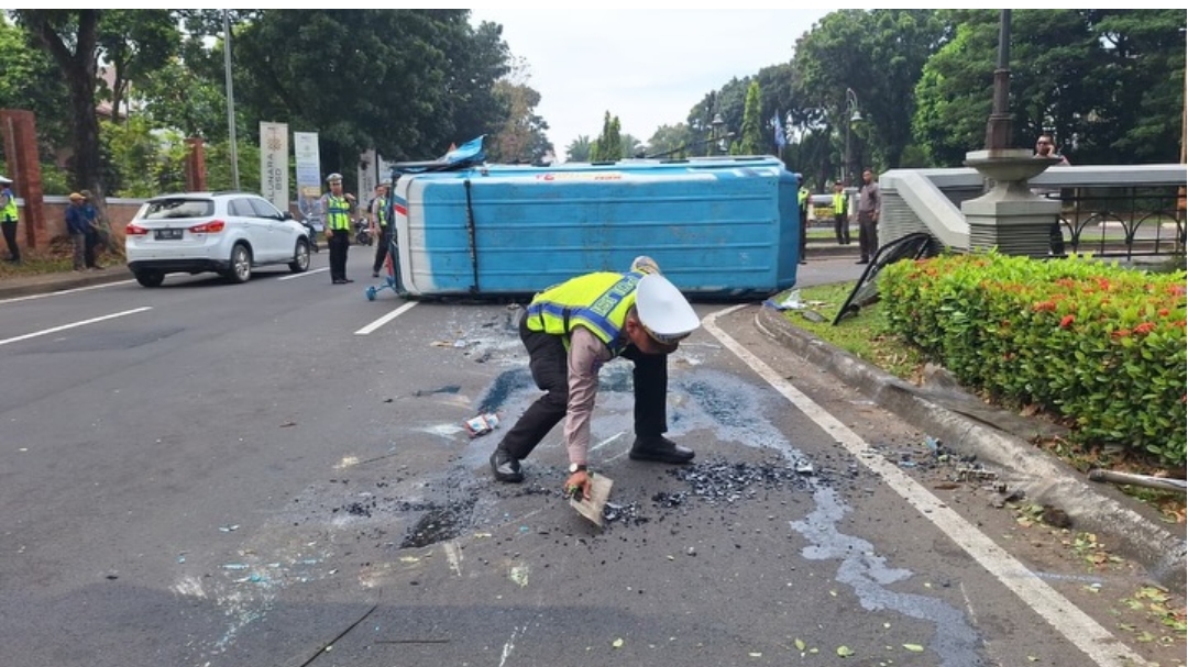 Satlantas Polres Tangerang Selatan Bantu Evakuasi Kecelakaan Minibus di Jalan Letnan Soetopo BSD
